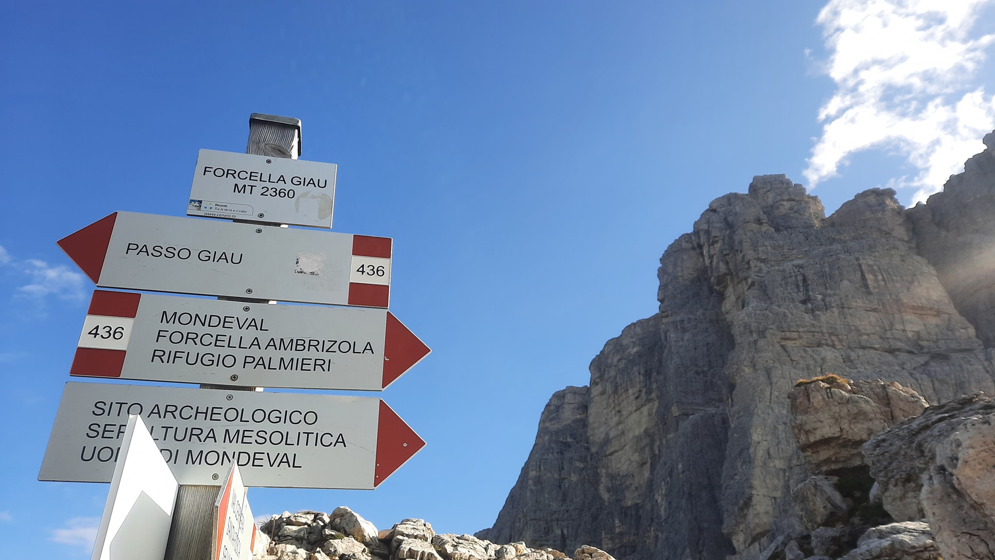 - Accés, des del Passo Giau, 2.236m (enllaç maps). Situat a uns setze quilòmetres de Cortina d’Ampezzo, és un dels passos més alts de les Dolomites i garanteix unes vistes impressionants del Monte Pelmo en primer pla, seguit de la Civetta i Marmolada. Venint de Cortina per la carretera SP638 un centenar de metres abans del pas trobem explanades on deixar el cotxe si l’aparcament de dalt és ple.