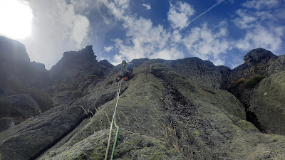 Equipat lo just, cal connectar amb aquest itinerari per entendre'l. Caràcter íntegre i solitari que permet l'aventura en una paret extensa i plena de sol. L'austera bellesa del cim ens pren a aquest paisatge al que ja volem tornar. Jornada llarga la d'avui, tant que al retorn la nit fa camí amb nosaltres. Intensitat no ha faltat en aquesta descoberta, ni plenitud. És l'escalada que estàvem necessitant!